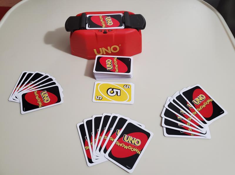 Shop Kimmyshop Mattel Uno Showdown Quick Draw Family Card Game With 112 Cards Uno Showdown Unit from 400 stores starting at 30. Similar ones also available. When players are down to one card they must remember to yell UNO WHATS INCLUDED.